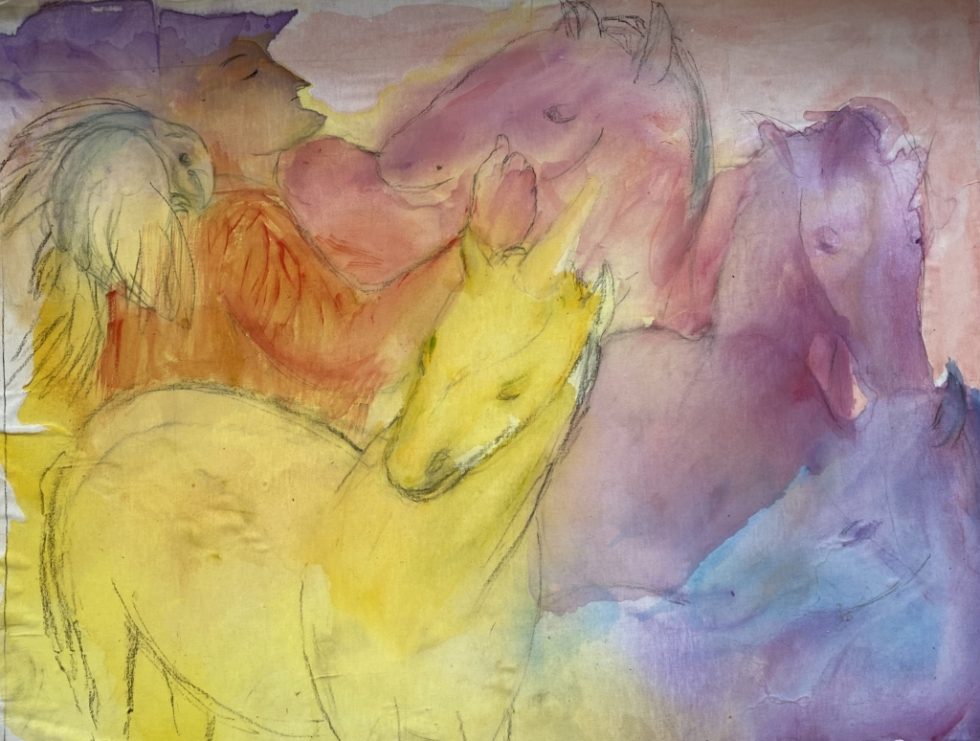 It starts as Abstract painting using acrylic in a Wet-on-Wet manner and it follows and interacts with the accidental combinations of colors and shapes in a constant dialogue until creating the product: an image, a story in progress and a discovery through the perception of what has happened before our eyes.