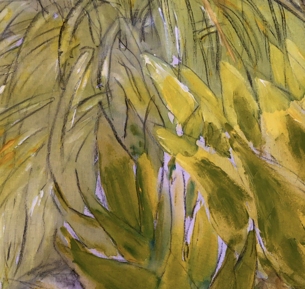 Използвам неподготвено платно и акрил с подобрител на втечняването на боите. Цветът тече свободно и се променя при съхнене. Защо толкова се пристрастих към тази техника?